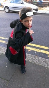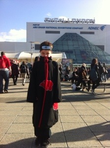 With my basic pattern cutting skills I got to work on a cloak for my son to wear to ComicCon October last year in London. He’s really loves Naruto (Japanese Anime cartoon) and passionately wanted an Akatsuki Cloak.